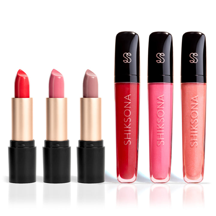 Indulge with 3 of ShikSona Beauty's signature lipsticks and lipglosses. In this set you'll enjoy: